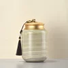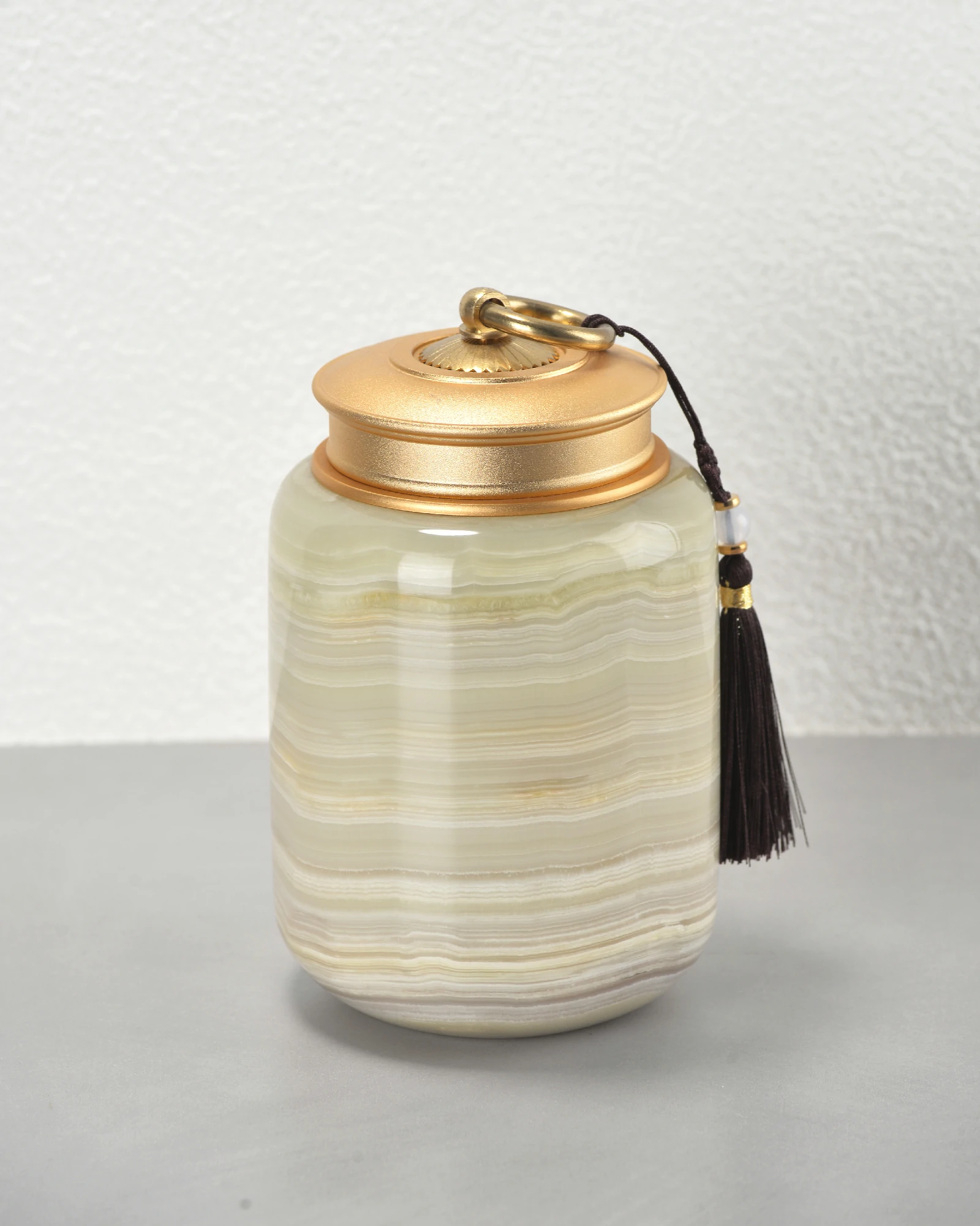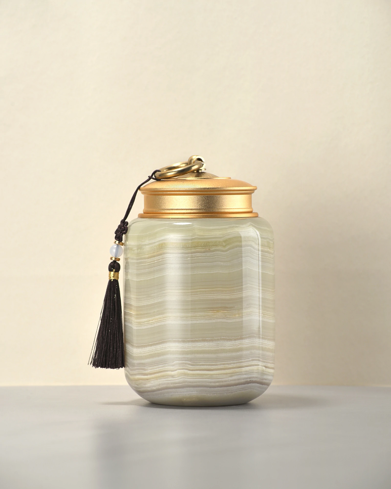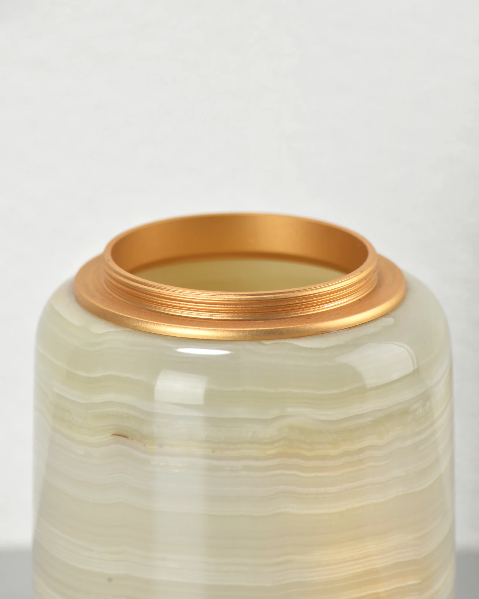 Crafted from solid green onyx and topped with a sleek metal screw lid, this storage jar brings together classical stone artistry and modern practicality. The natural stone showcases delicate green tones and subtle veining, making each piece one-of-a-kind.