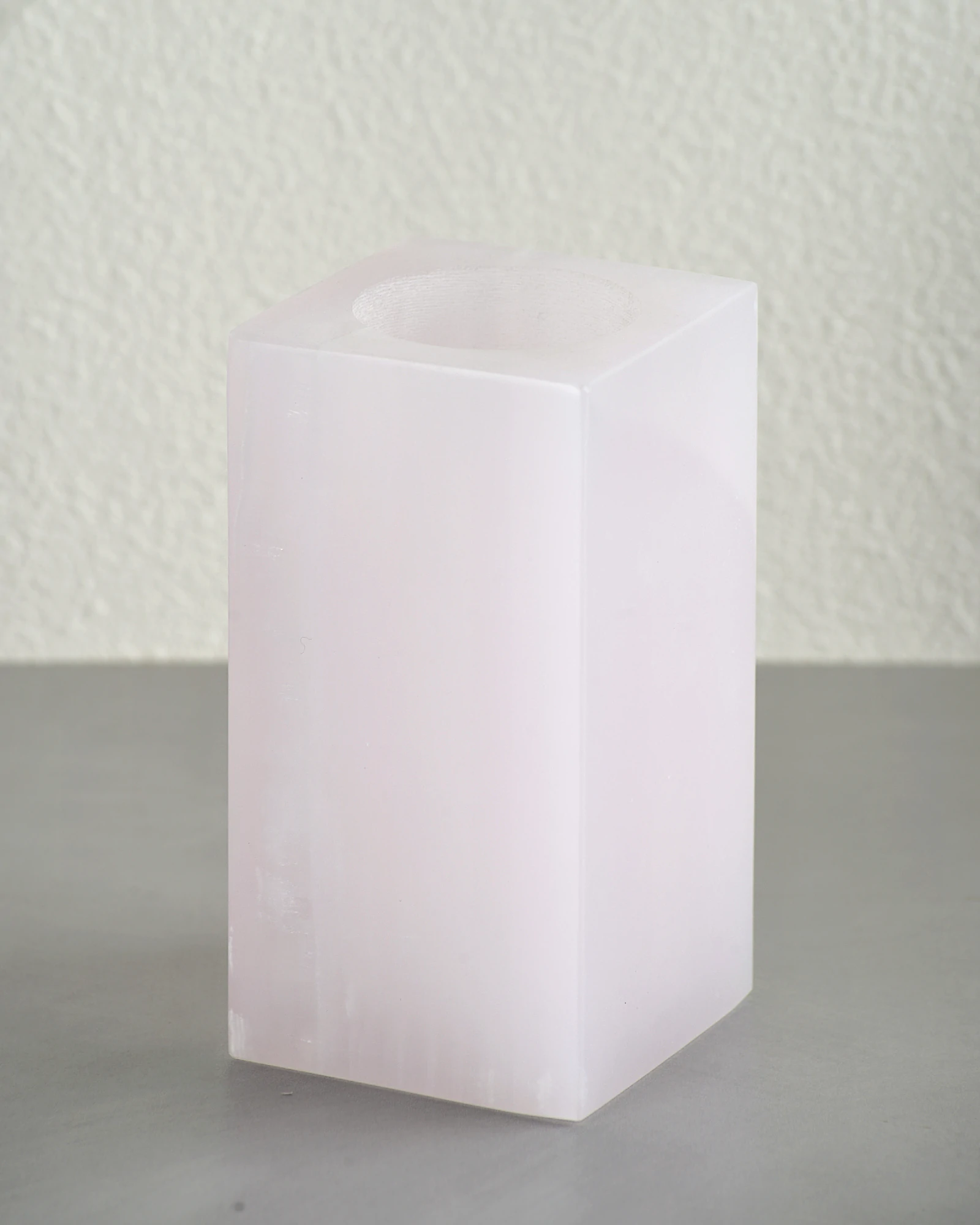 Hand-carved from a solid block of rare pink onyx, this vase combines modern minimalism with the timeless beauty of natural stone. Its square outer form contrasts with a smooth cylindrical opening inside, creating a refined vessel for displaying flowers. The soft pink hue is pure and free of impurities, while the stone’s natural translucence gives it a gentle glow, especially when placed near sunlight.